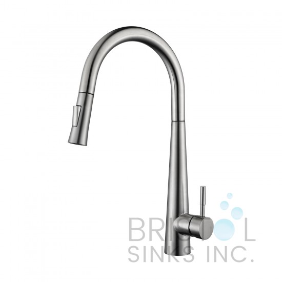 A sleek and sophisticated accent for any kitchen. Its elegant, high-arc design and minimalist profile perfectly complement modern and contemporary interiors, while the soft, muted tone of the brushed nickel finish adds a touch of warmth and versatility. This faucet is a subtle yet striking statement piece, seamlessly blending with clean lines, stainless steel appliances, and luxurious countertops to create a kitchen that is both functional and stylish. It’s the ideal choice for an elevated, refined kitchen aesthetic.